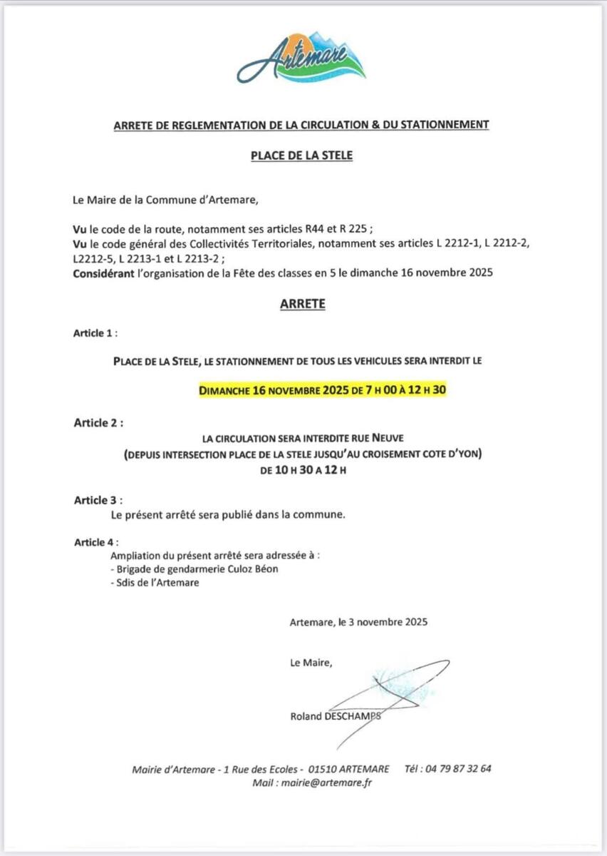 Votre mairie / Actualités / Arrêté de circulation : Fête des classes en 5