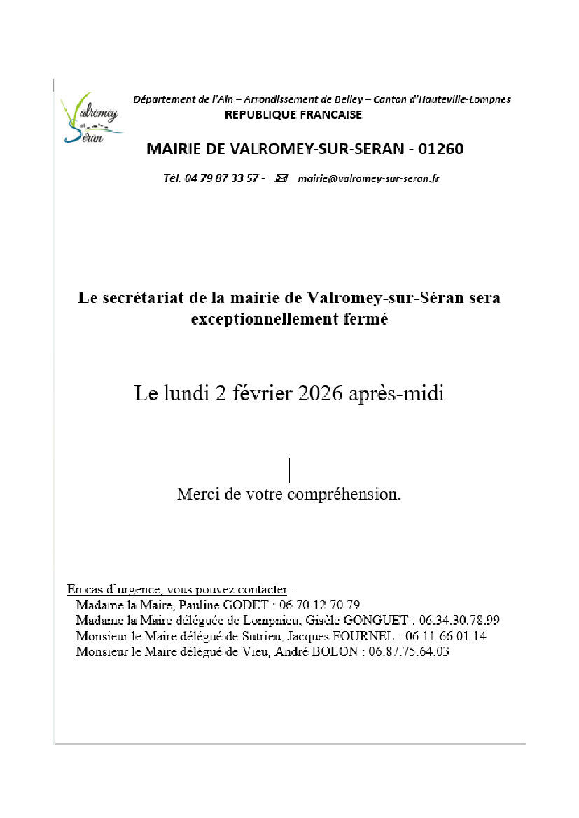 Toute l'actualité de Mairie de Valromey-sur-Séran