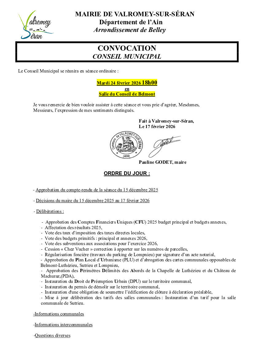 Convocation au prochain conseil municipal