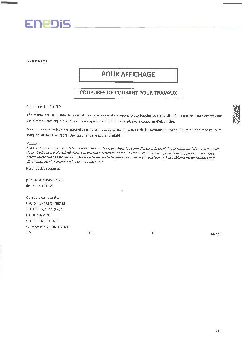 Coupure d'électricité jeudi 18 décembre 2025 entre 8h30-12h