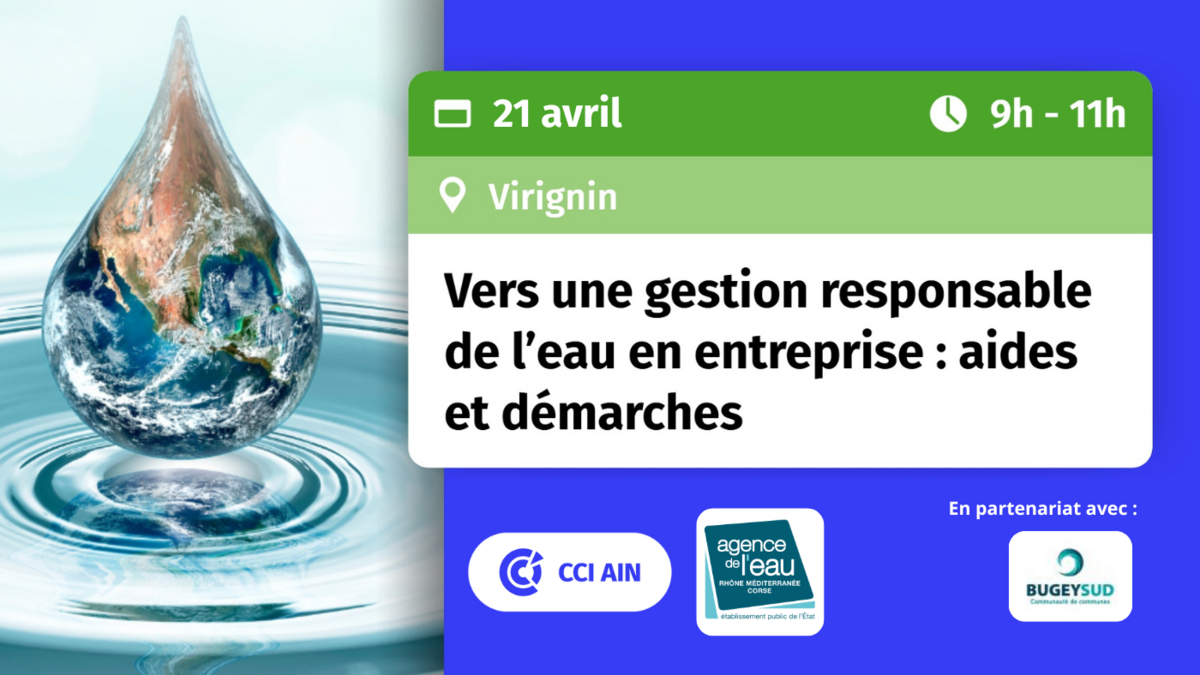 Participation gratuite sur inscription (places limitées) : https://www.ain.cci.fr/evenement/vers-une-gestion-responsable-de-leau-en-entreprise-aides-et-demarches-6