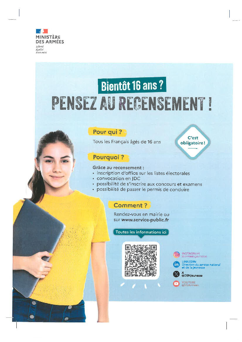 BIENTOT 16 ANS PENSEZ AU RECENSEMENT