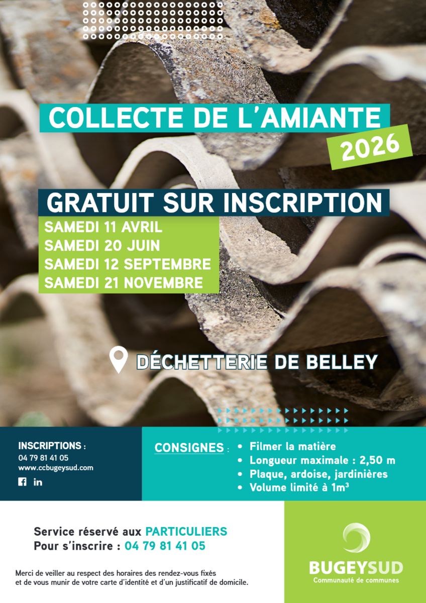 Récupération de l'amiante - calendrier 2026.
