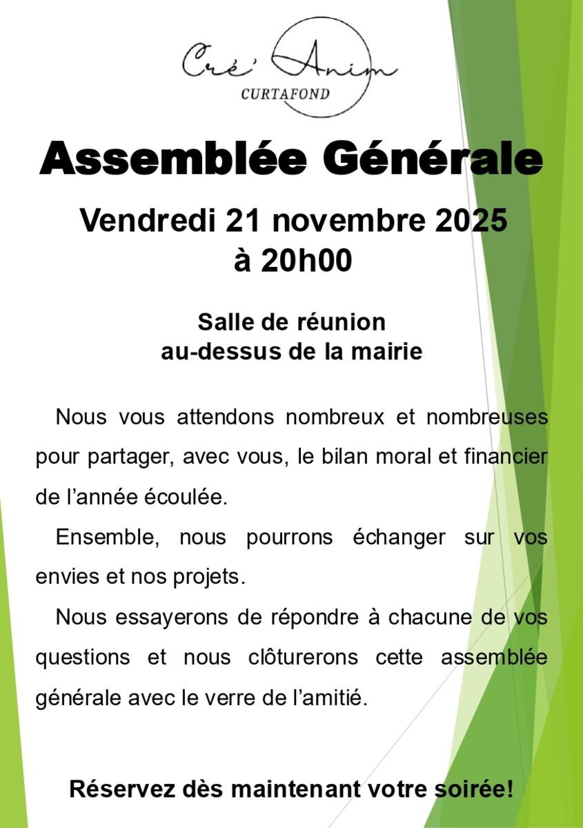 Votre mairie / Actualités / Assemblée générale Cré'anim 21/11 20h