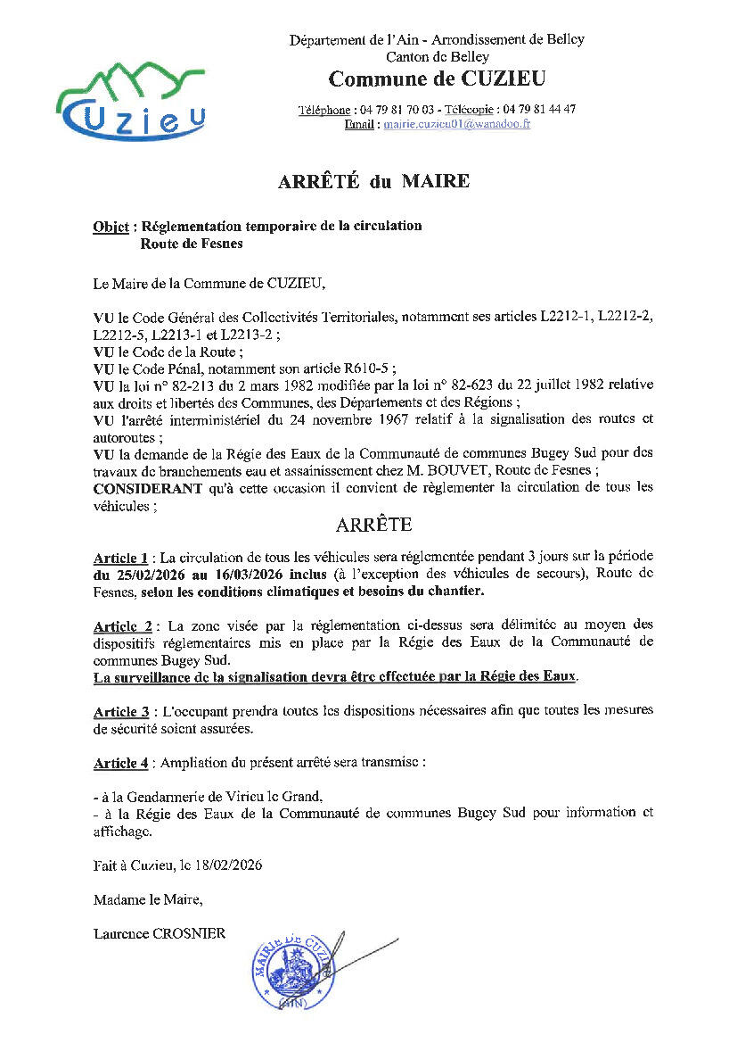 des travaux de branchement vont avoir lieu sur la partie haute de la route de Fesnes (entre les n°500 et 600) à partir de mercredi 25/02 pour une durée de 3 jours.