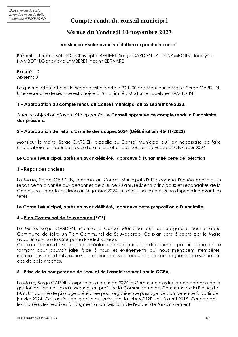 Compte rendu du Conseil du 19 novembre 2025
