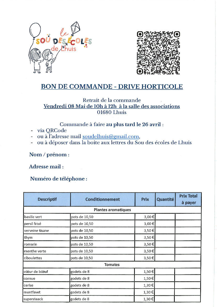 Votre mairie / Actualités / Drive horticole Sou des écoles de Lhuis
