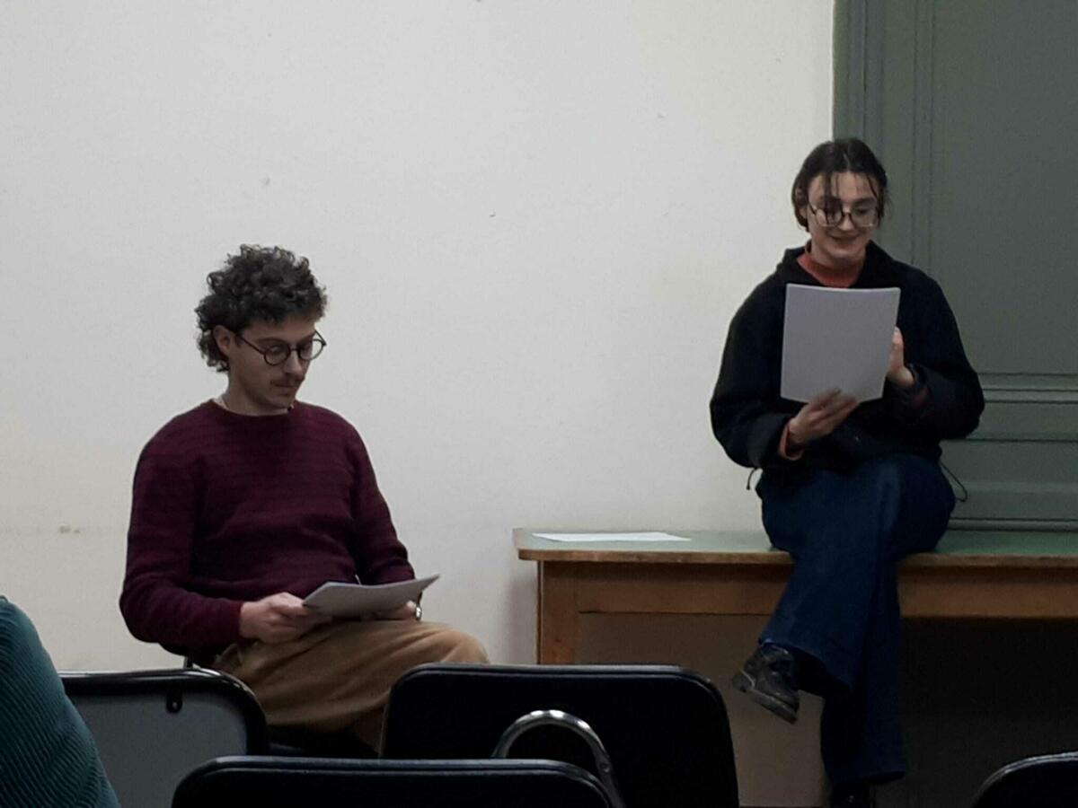 Samedi 24 janvier à 18h, la bibliothèque de Lhuis a invité deux comédiens : Maxence Catcel et Salomé qui font partie de la compagnie de l'ingénu(e) basée à Rix. Ils ont lu avec brio des textes sur le thème des villes et des campagnes à l'occasion des nuits de la lecture que l'équipe de "Lire à Lhuis" programme chaque année en janvier.