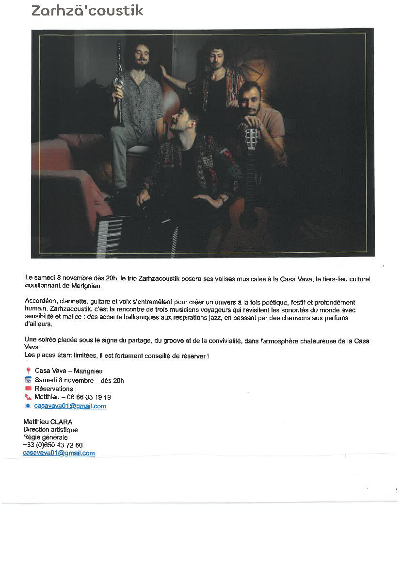 Concert à la Casa Vava à Marignieu les samedi 8 novembre