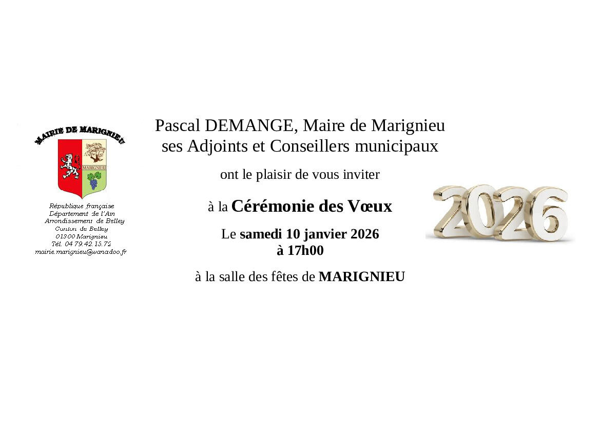 Invitation à la cérémonie des voeux à MARIGNIEU