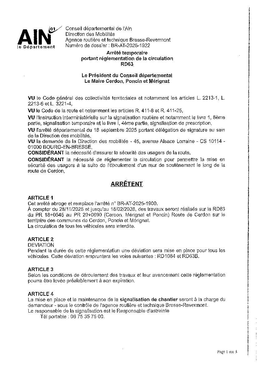FERMETURE DE LA RD63 MERIGNAT