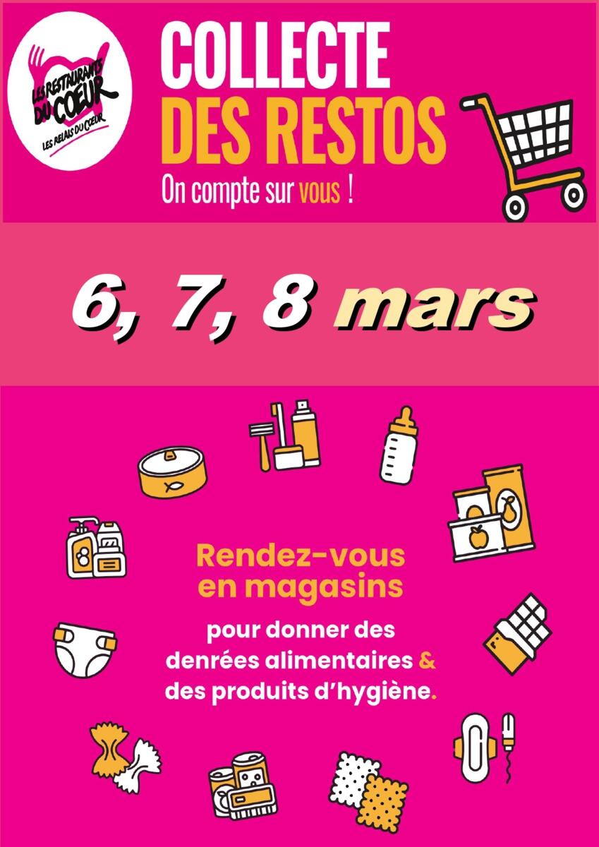 Les 6, 7 et 8 mars, les Restos du Cœur compteront sur vous ! Lors de vos courses,