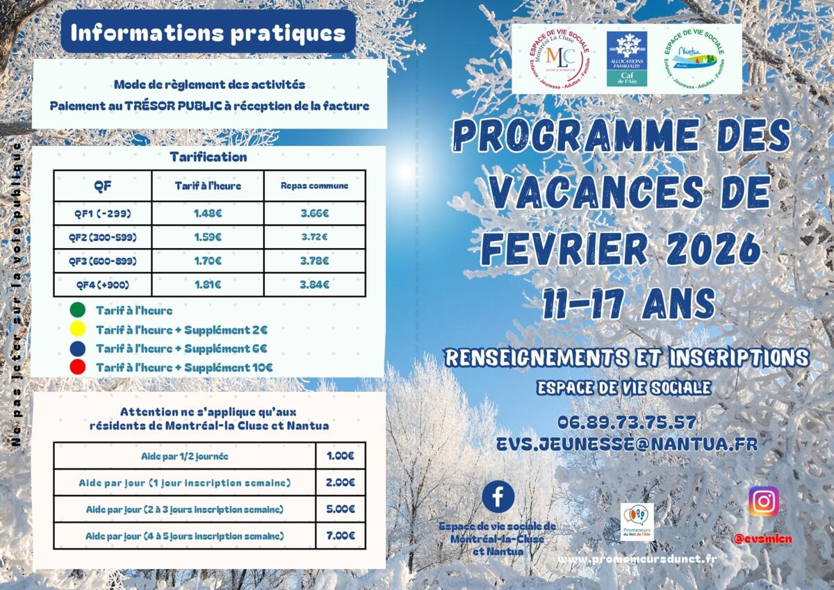 #EspaceDeVieSociale #VacancesDeFévrier #11ans17ans #Ados #Sorties #Sports