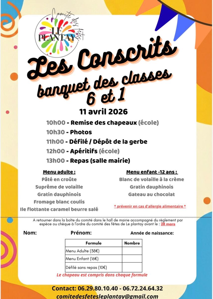 🍽️ Repas des conscrits – il reste des places !
