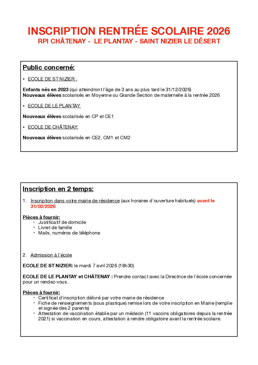 Inscriptions scolaires rentrée 2026
