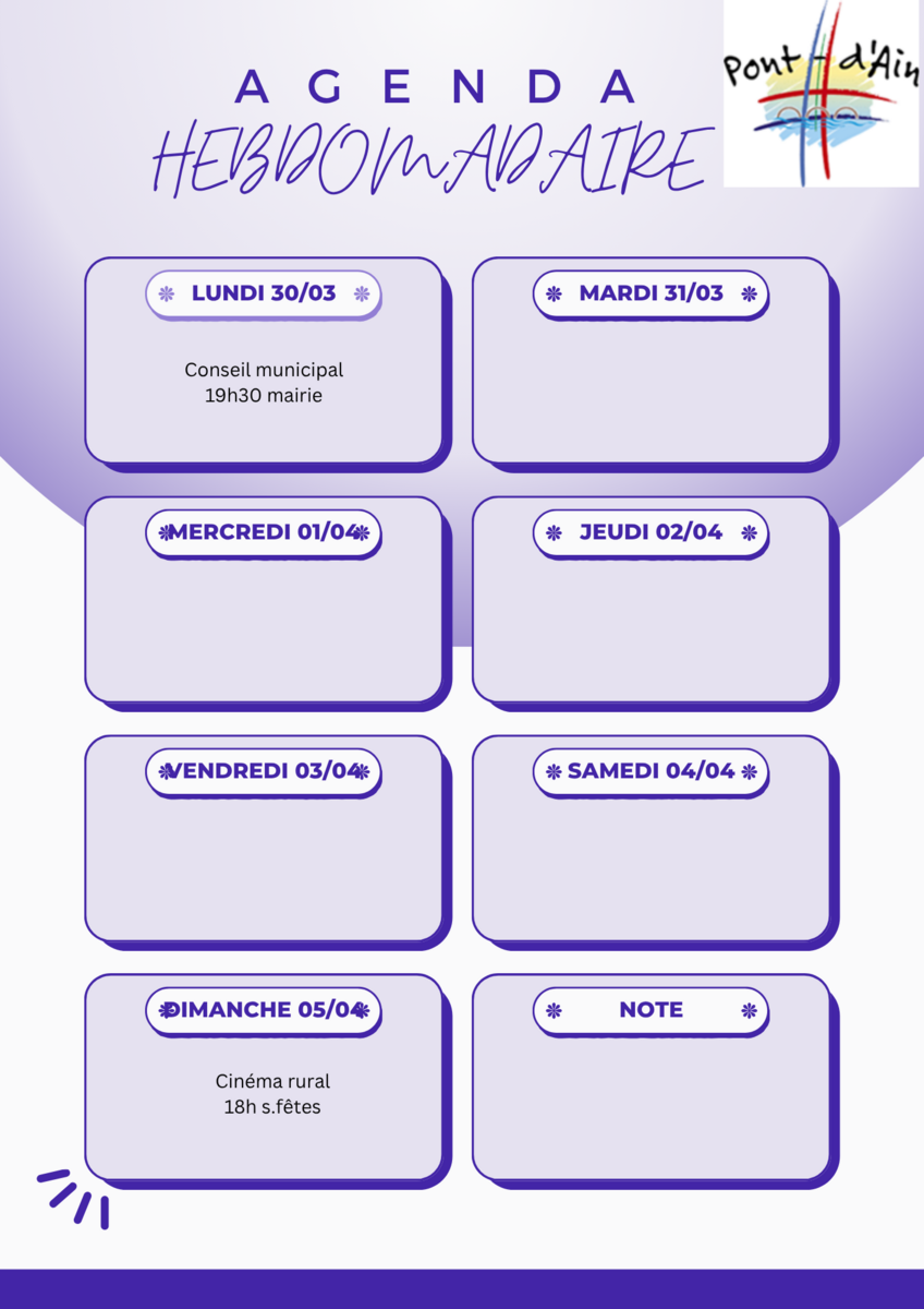 Votre mairie / Actualités / Agenda événements Pont d'Ain