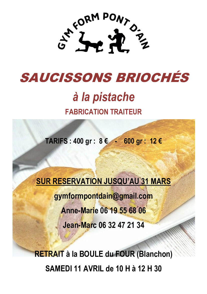 L'association GYM FORM PONT D'AIN vous propose la vente de Saucissons Briochés à la Pistache (Fabrication Traiteur) :