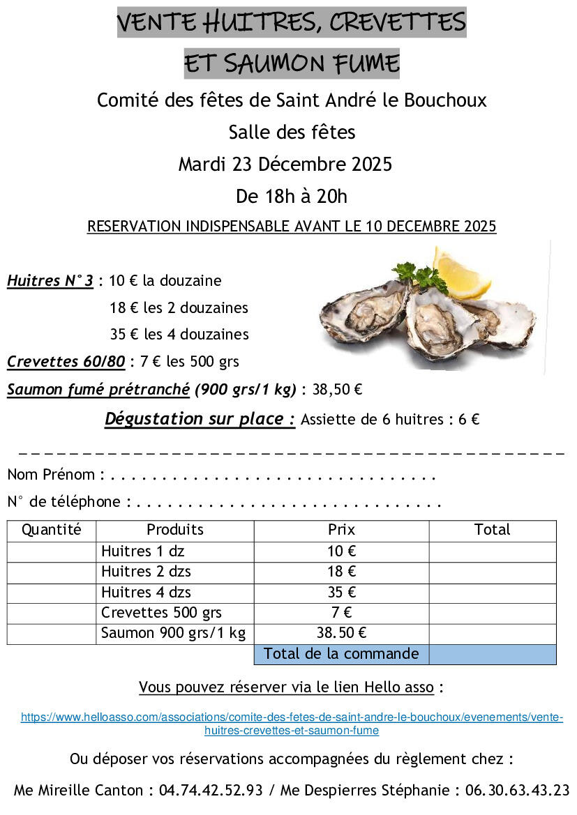 Vente d'huitres, crevettes, saumon par le comité des fêtes