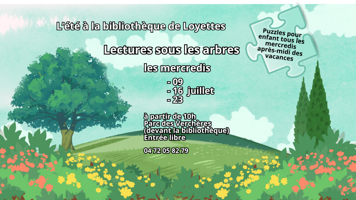 👉 des lectures 📖 sous les arbres 🌳 les mercredis 9,16 et 23 juillet entre 10h et 12h, dans le parc des Verchères, en face de la bibliothèque,