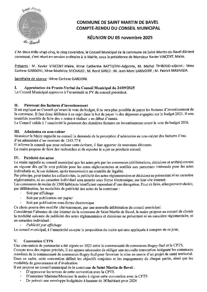 Compte-rendu de réunion d conseil municipal du 05 11 2025