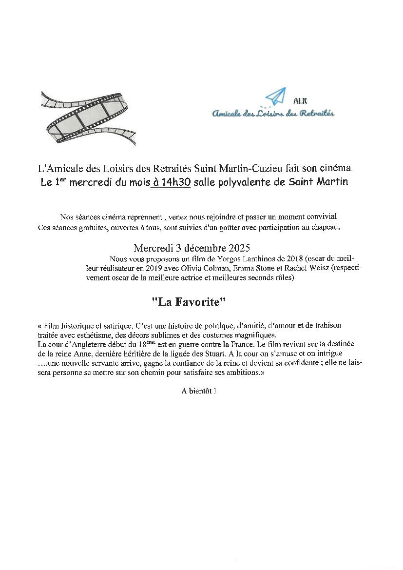 Prochaine séance de cinéma le 1er décembre à 14h30