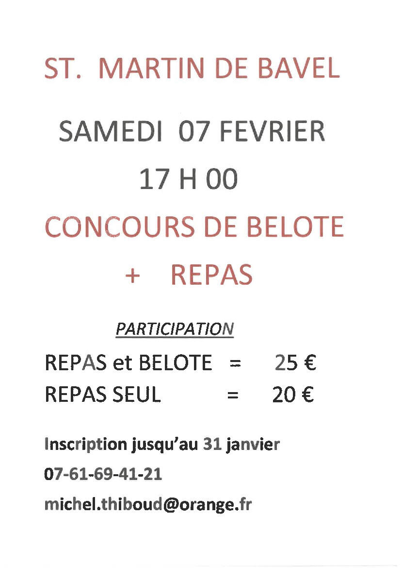 Concours de belote le 07 février à ST MARTIN DE BAVEL