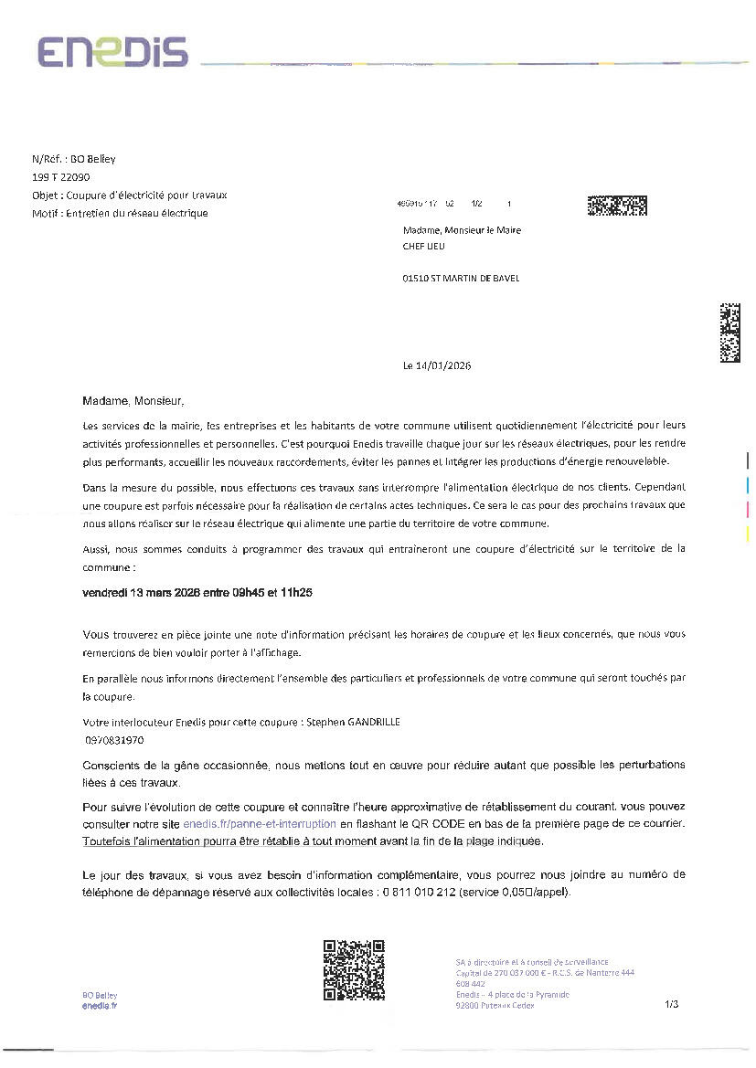 COUPURE ELECTRICITE 13 MARS 2026. Entre 9H45 A 11H25