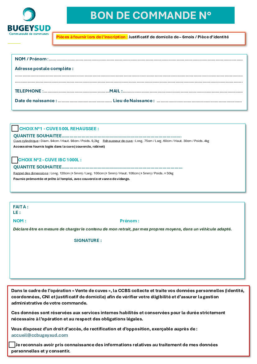 Information CCB Sud : Vente de cuves de récupération d'eau