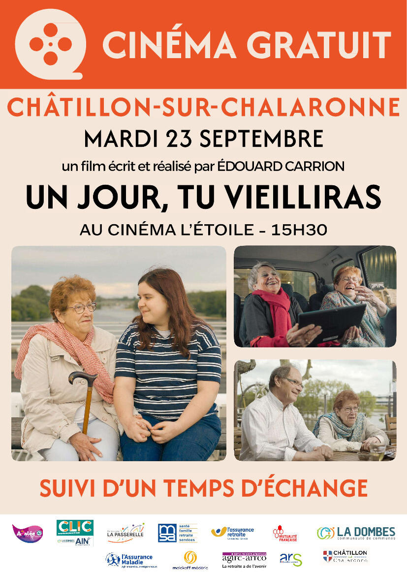 La diffusion du film "Un jour tu vieilliras", écrit et réalisé par Édouard Carion, se tiendra le 23 septembre 2025 à 15h30 au Ciné L’Étoile de Châtillon