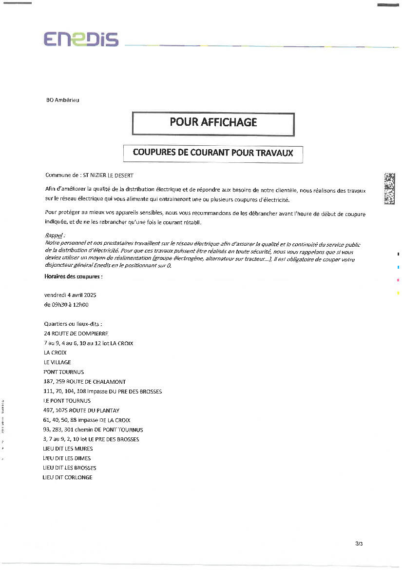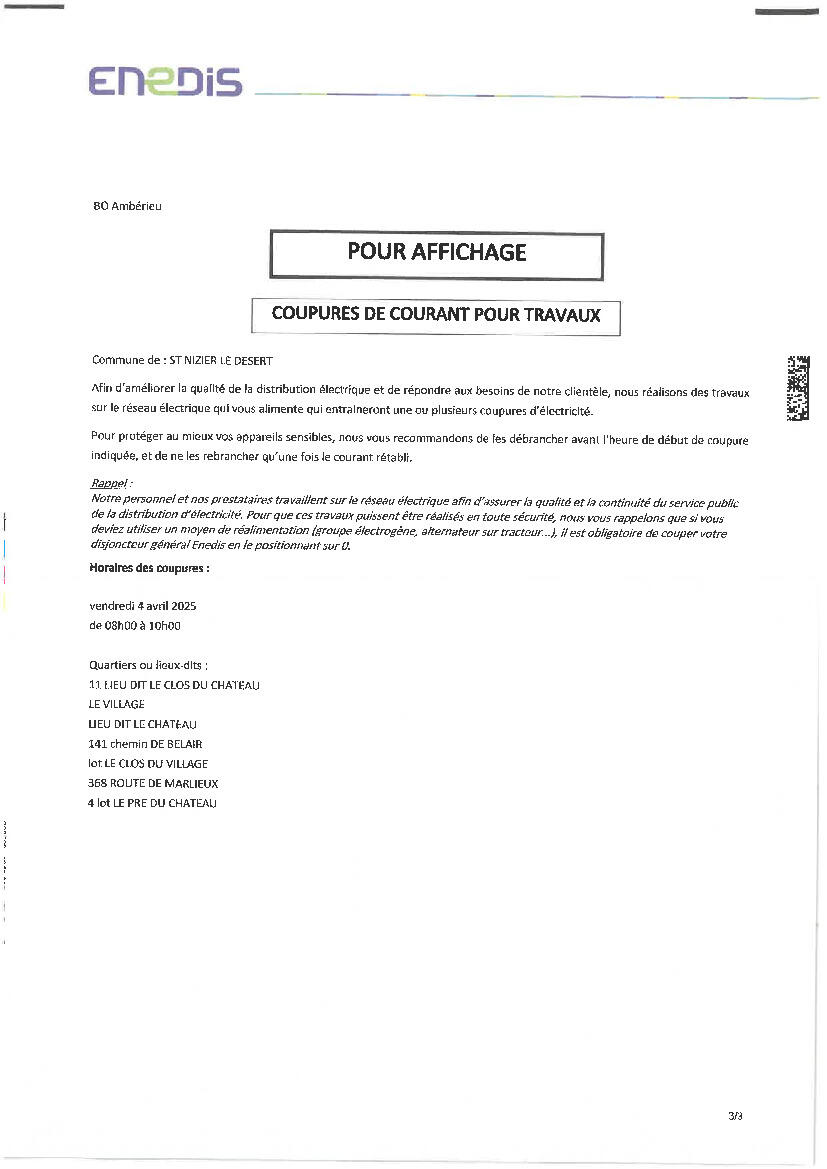 Votre mairie / Actualités / COUPURE ELECTRICITE 04.04.2025