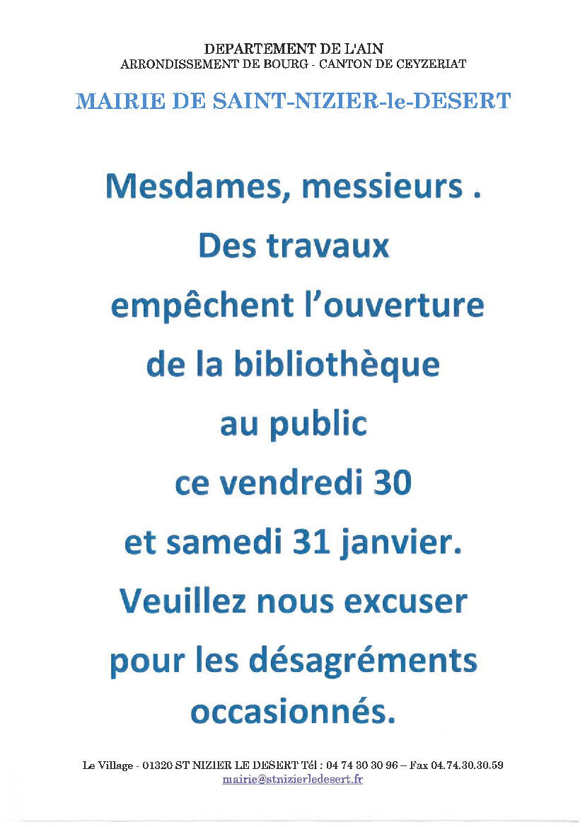 INFORMATION BIBLIOTHEQUE SAINT NIZIER LE DESERT