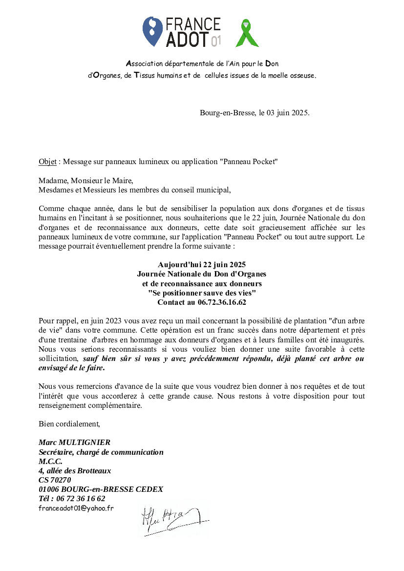 JOURNEE NATIONALE DU DON D'ORGANES 03/06/2025 JOURNEE NATIONALE DU DON D'ORGANES ET DE RECONNAISSANCE AUX DONNEURS