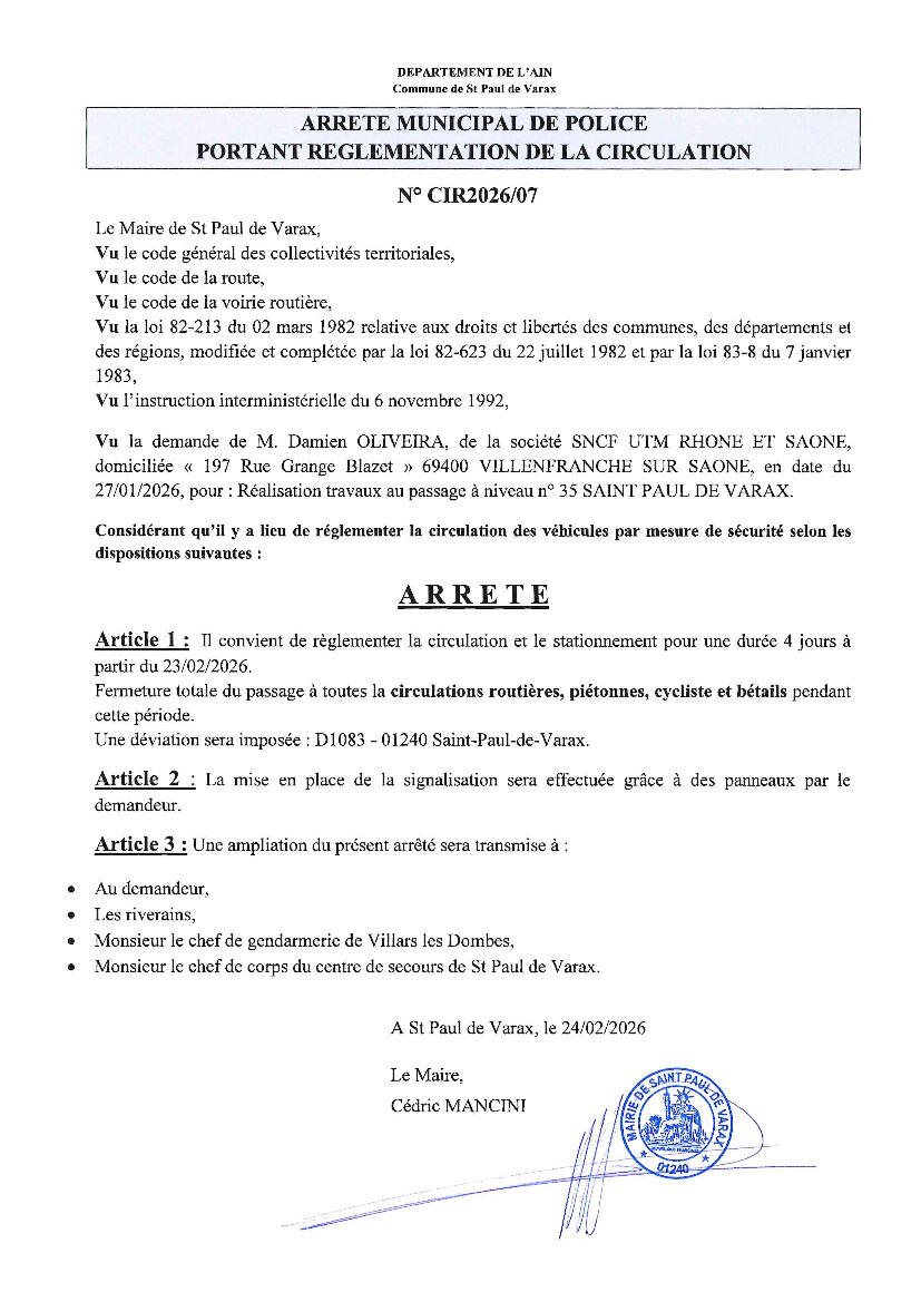 Toute l'actualité de Mairie de Saint-Paul-de-Varax