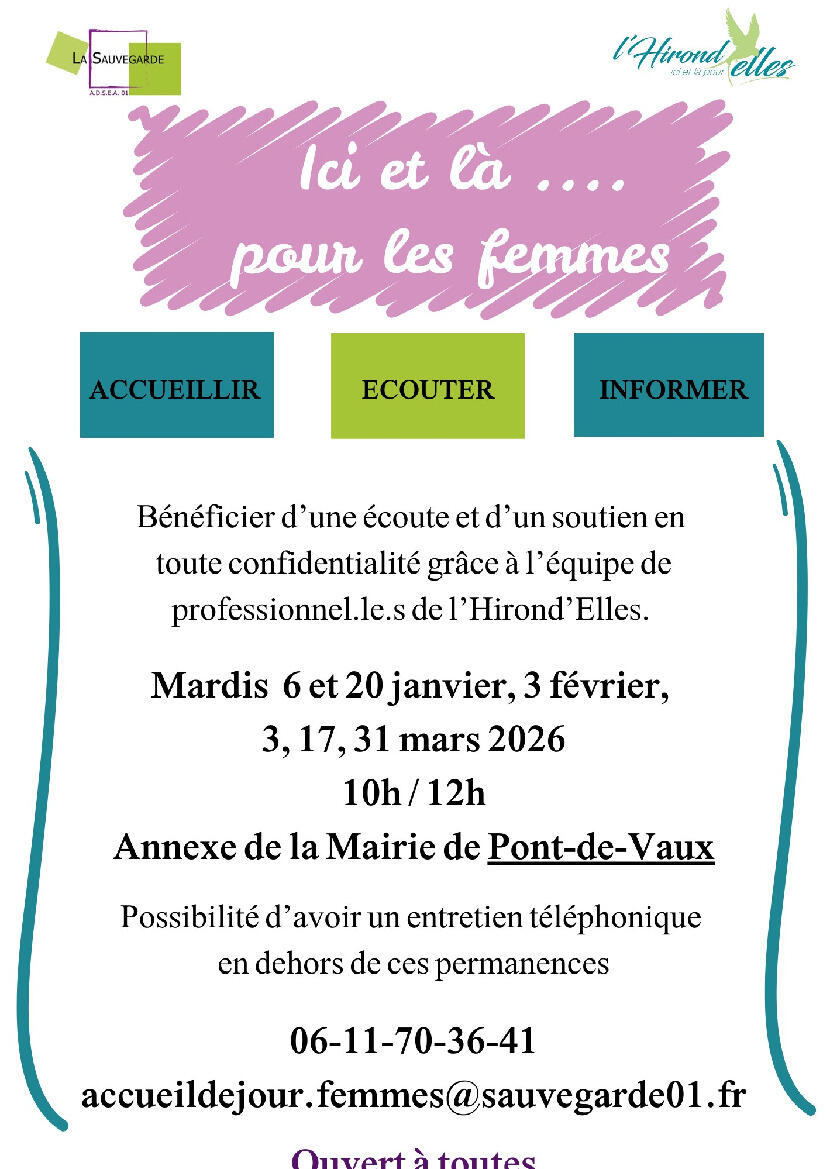 Permanences Hirond'Elles 1er trimestre 2026 à Pont-de-Vaux