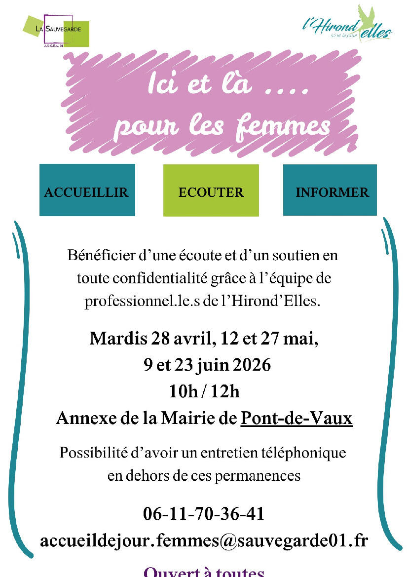 Permanences Hirond'Elles 2ème trimestre 2026 à Pont-de-Vaux