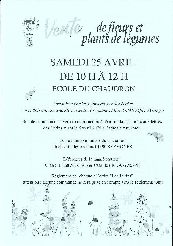 Les Lutins : Vente de fleurs/plants de légumes avant le 8 04