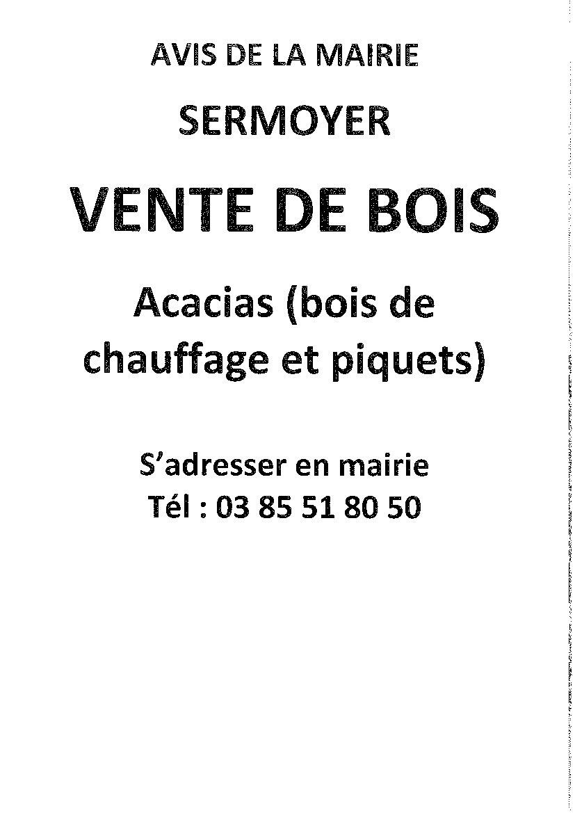 Vente de bois 05/01/2026 Vente de bois - s'adresser à la mairie 03 85 51 80 50 Source : Mairie de Sermoyer