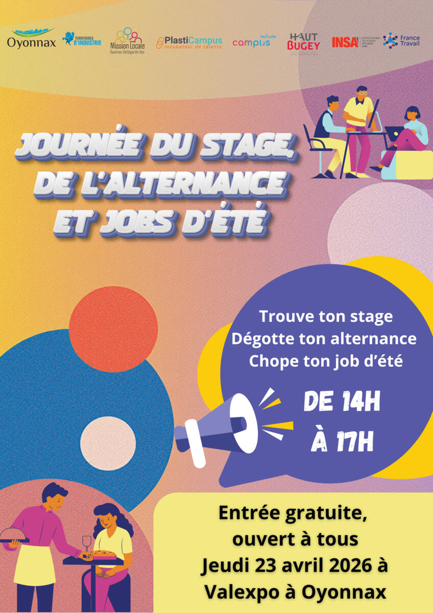 Journee Saje 17/04/2026 Journée SAJE : salon de l’alternance, du job d’été et du stage Jeudi 23 avril 14h-17h Entrée gratuite Valexpo à Oyonnax