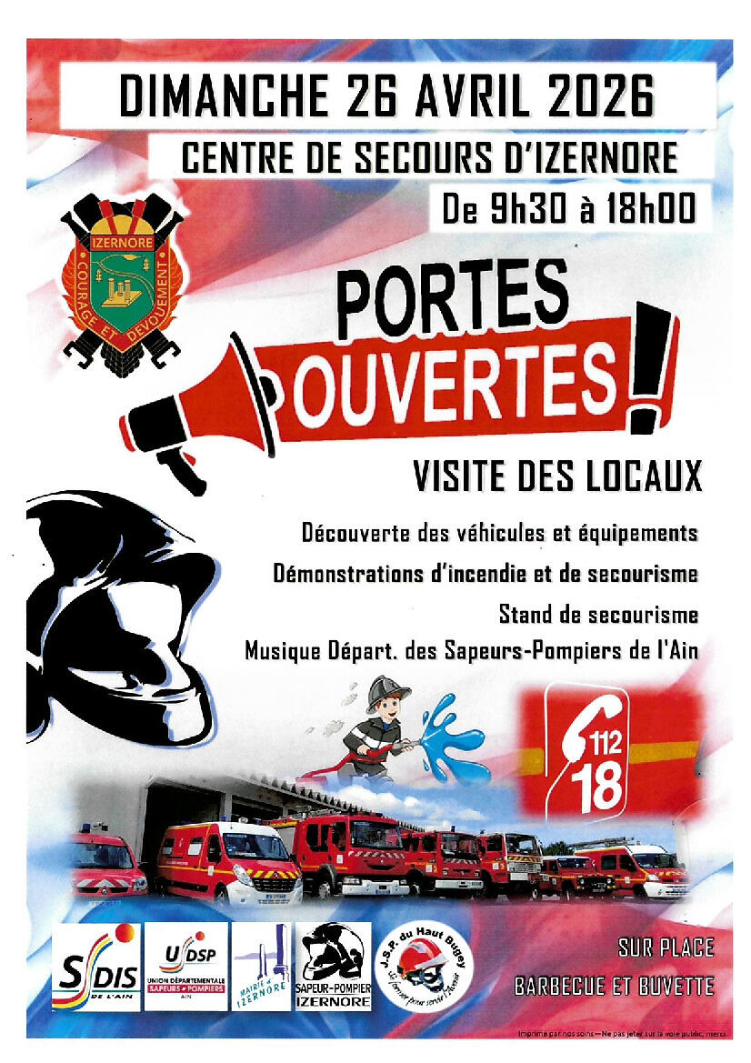 Pompiers Izernore - Journee Portes Ouvertes 09/04/2026 Journée portes ouvertes du centre de secours d'Izernore DIMANCHE 26 AVRIL 2026