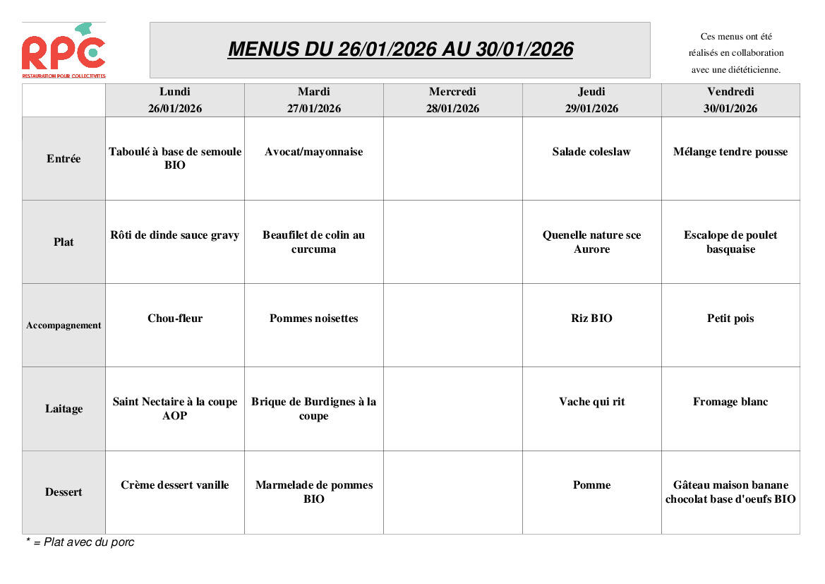 MENU CANTINE ECOLE HEYRIAT DU 26 AU 30 JANVIER 24/01/2026 MENU CANTINE ECOLE HEYRIAT DU 26 AU 30 JANVIER