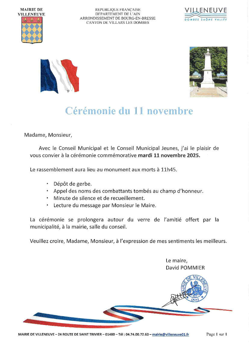CEREMONIE COMMEMORATIVE DU 11 NOVEMBRE