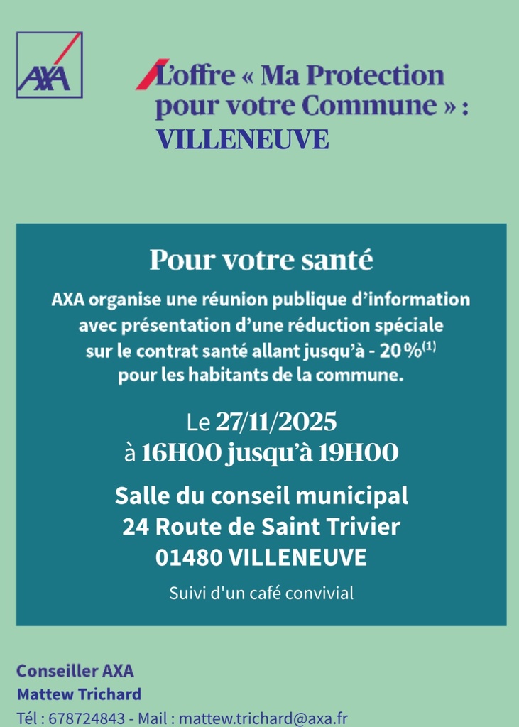 ASSURANCE-Ma Protection pour votre Commune 24/11/2025 MATTEW vous accueille à la mairie pour plus d'informations. Source : Mairie de Villeneuve