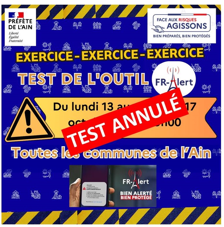 Afin d'éviter les alertes répétées pour les populations situées à proximité des limites de plusieurs secteurs géographiques dans les prochains jours, nous avons décidé d'annuler la diffusion de Fr-alert prévue pour demain, mardi 14 octobre 2025