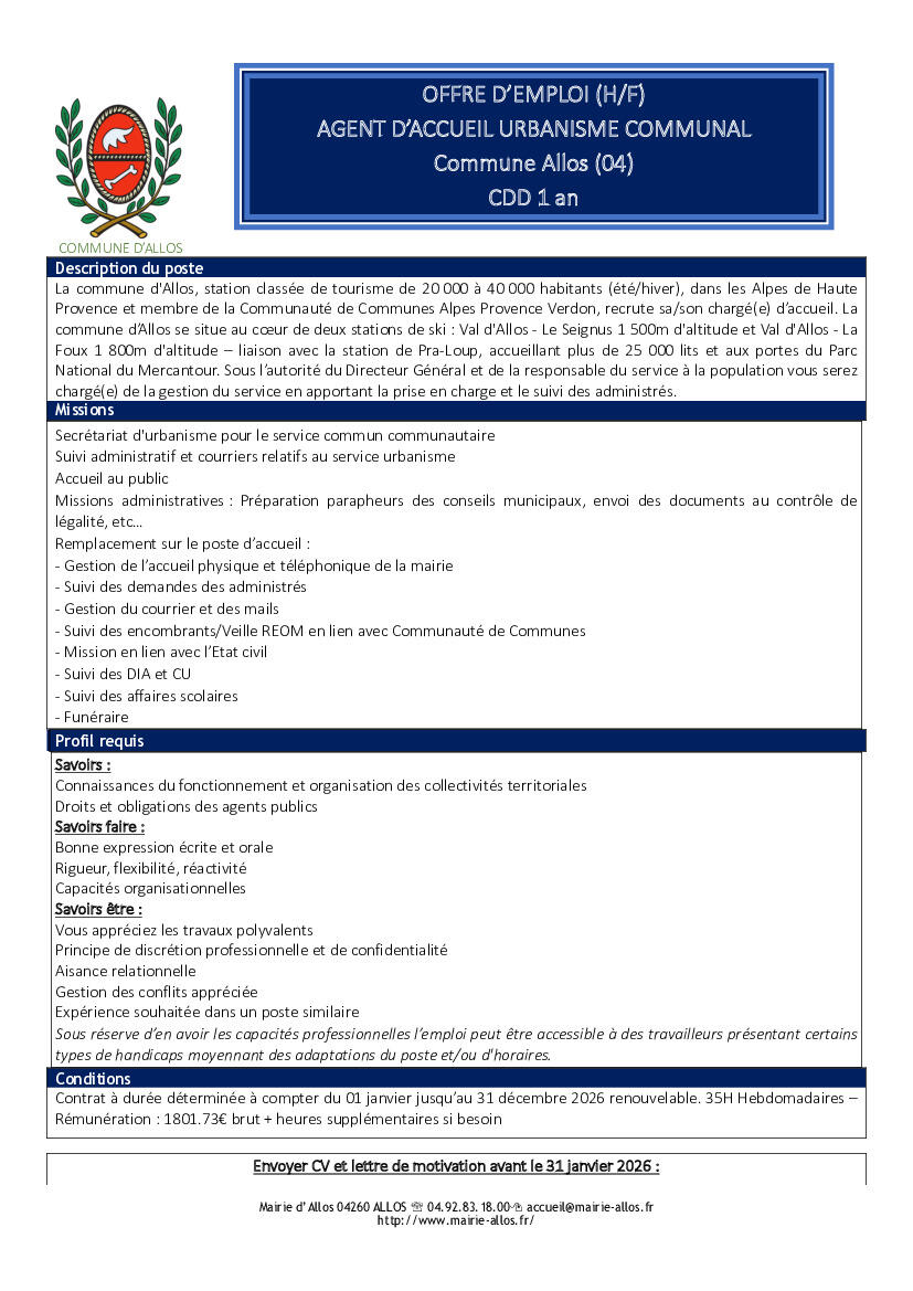 Votre mairie / Services / Les offres d'emploi