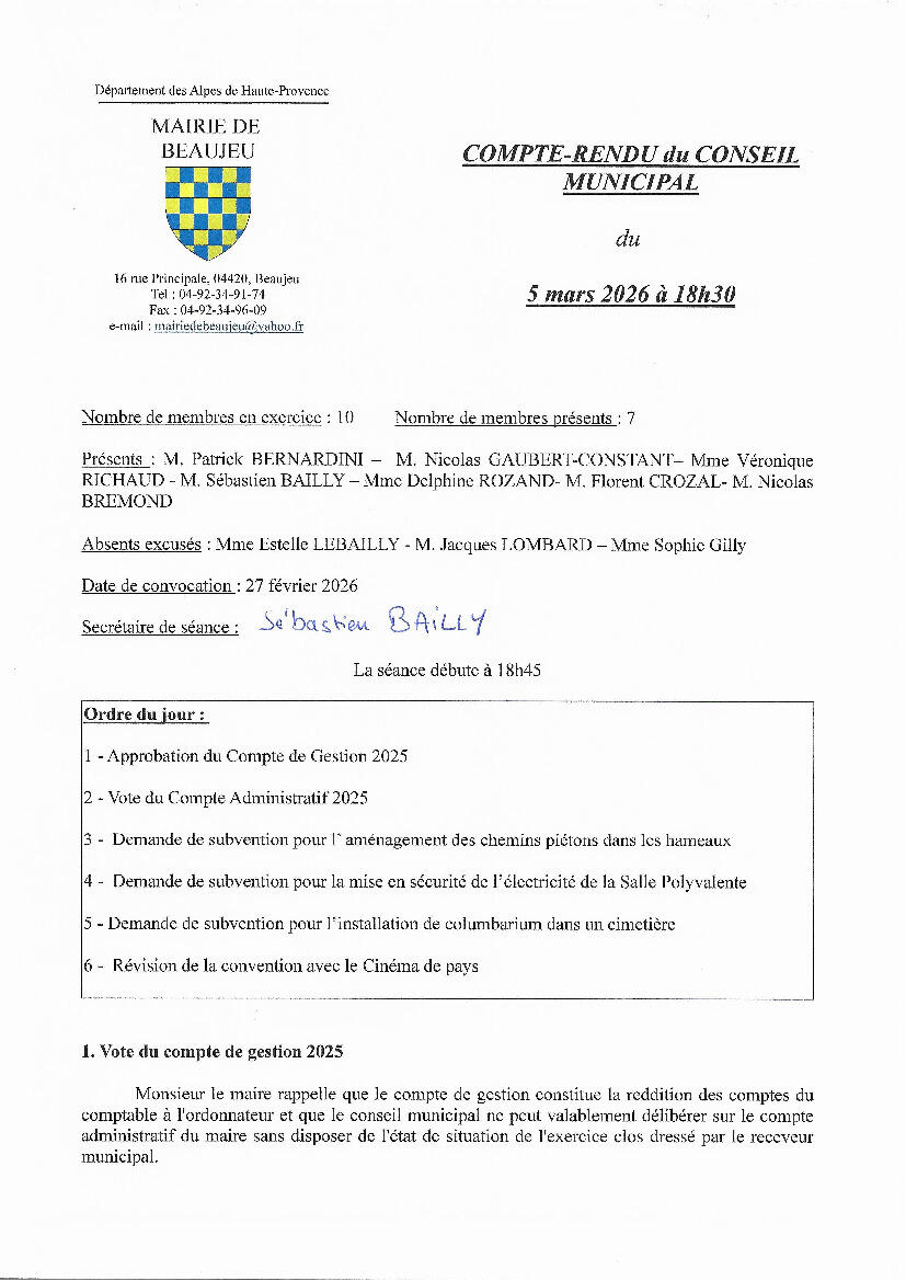 📌 Compte-Rendu Conseil Municipal du 5 mars 2026 📌