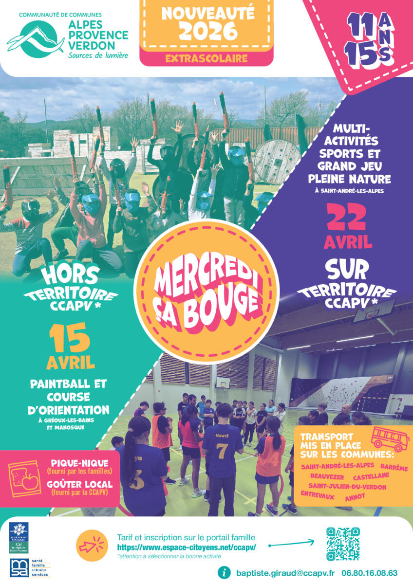 Une nouvelle activité est également lancée durant cette période pour les jeunes de 11 à 15 ans : « Mercredi ça bouge ! ». Il s’agit de journées organisées sur ou hors du territoire de la CCAPV autour d’activités originales et adaptées à cette tranche d’âge.