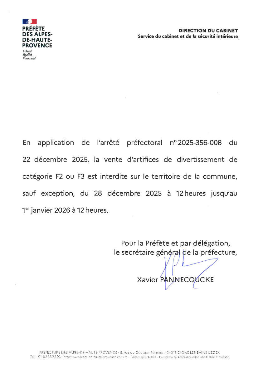 Arrêté préfectoral nº 2025-356-008 du 22 décembre 2025 portant règlementation de la vente et du transport de carburant au détail et de l’achat, de la vente, de la cession, de l’utilisation, du port et du transport des artifices de divertissement et d’articles pyrotechniques.