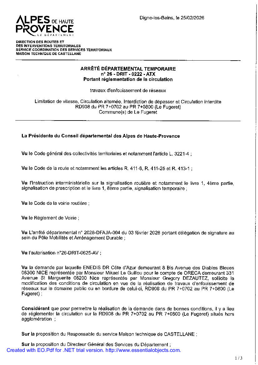 Arrêté départemental temporaire circulation