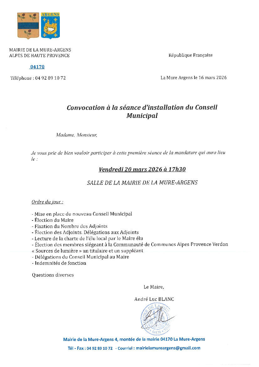 Veuillez trouver en pièce jointe l'avis de réunion pour la séance d'installation du nouveau conseil Municipal.