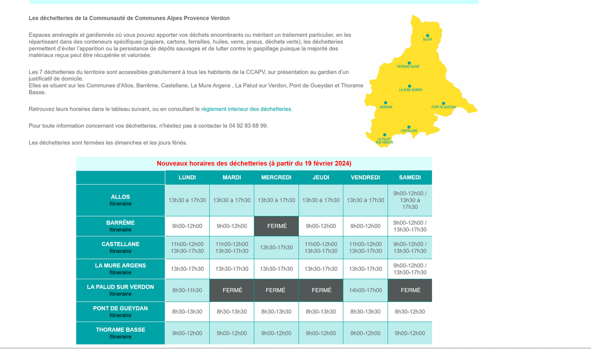 / Information horaires des déchetteries